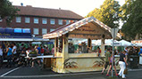 Das Zelt mit drei Verkaufsseiten ist von der Firma Losberger speziell nach unseren Vorgaben für uns hergestellt worden.